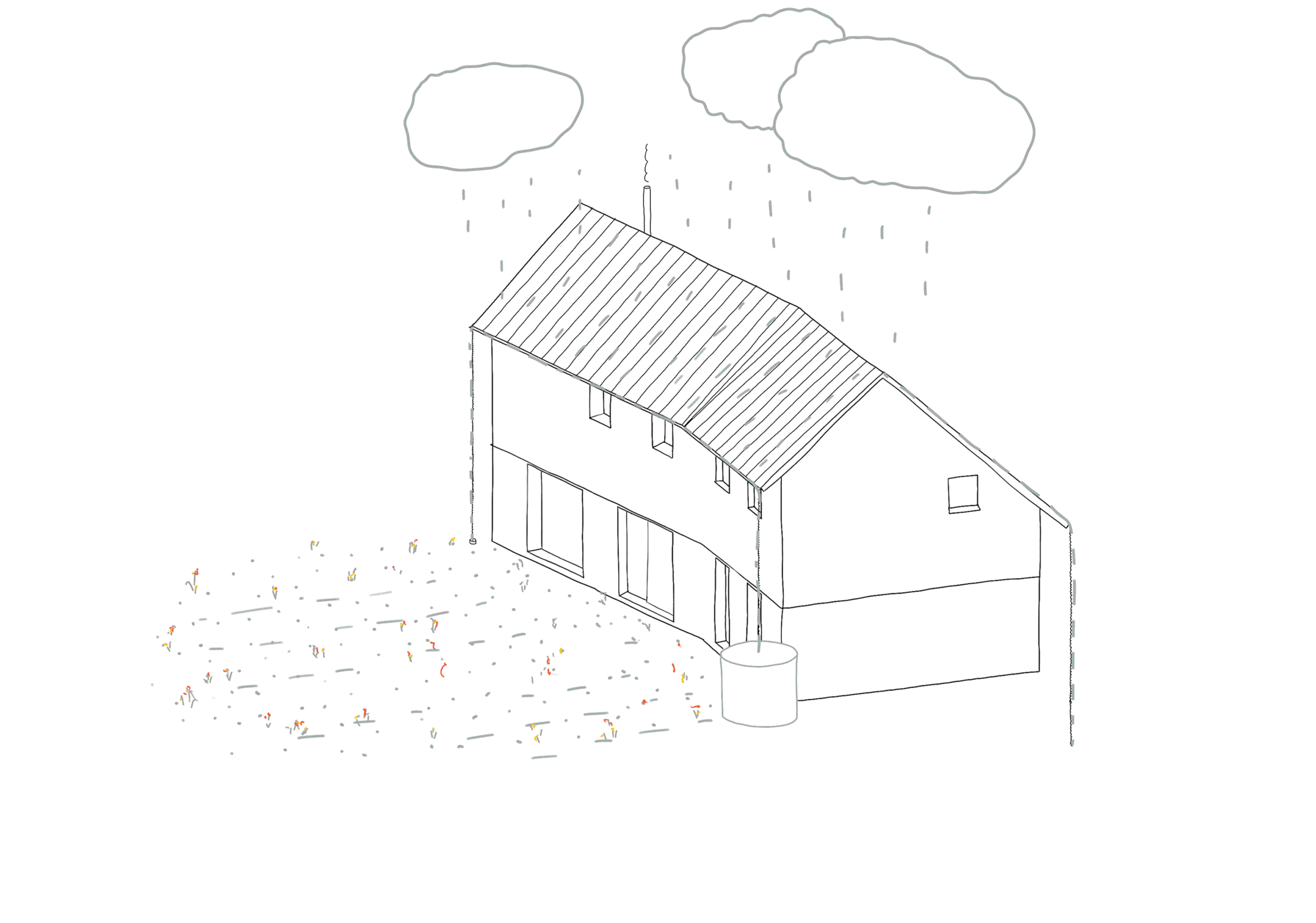 Entre la maison et la clôture, se forme un jardin linéaire, extension de l’espace habité.